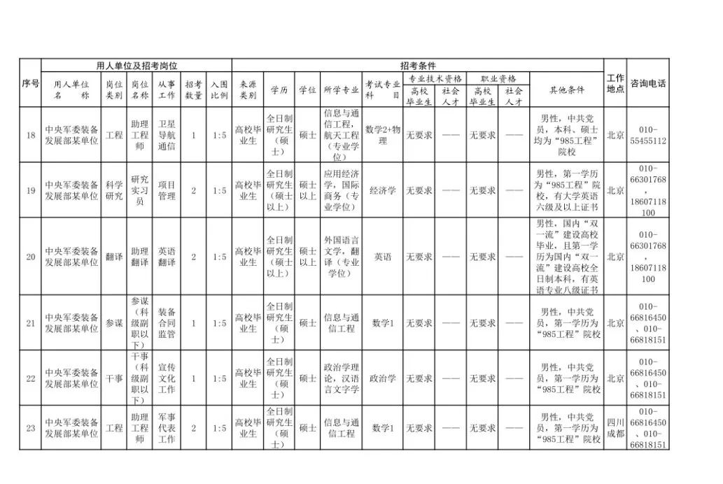 5、身体条件:身体健康,符合军队文职人员体检标准。